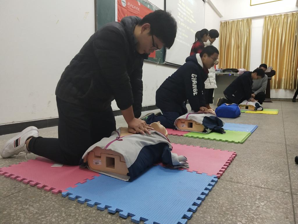 第二讲,心肺复苏。判断、呼救、按压、除颤,方梦萍向大家介绍了院前急救的重要性,在详细演示之后,现场指导员工进行急救,纠正大家在急救过程中出现的问题。