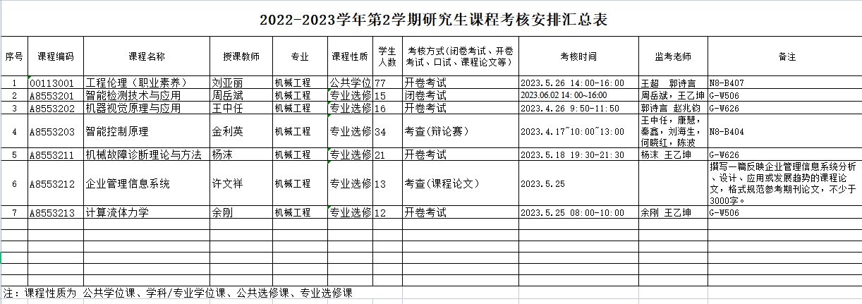 2022-2023学年第2学期研究生课程考核安排汇总表