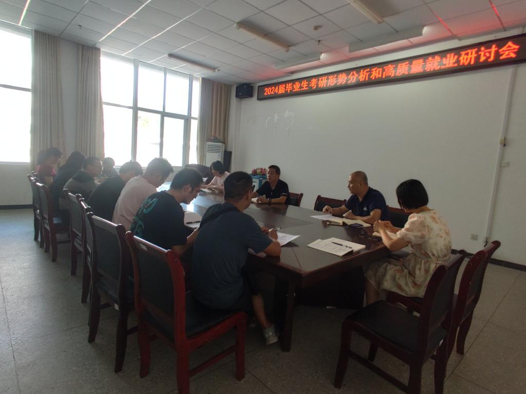 9月7日下午2点30分,威廉希尔官网召开2024届毕业生考研形势分析和高质量就业研讨会。参加会议的有,党委书记詹玉刚、副院长孙艳玲。会议由王超副书记主持,毕业年级辅导员、班主任也参加了本次会议。