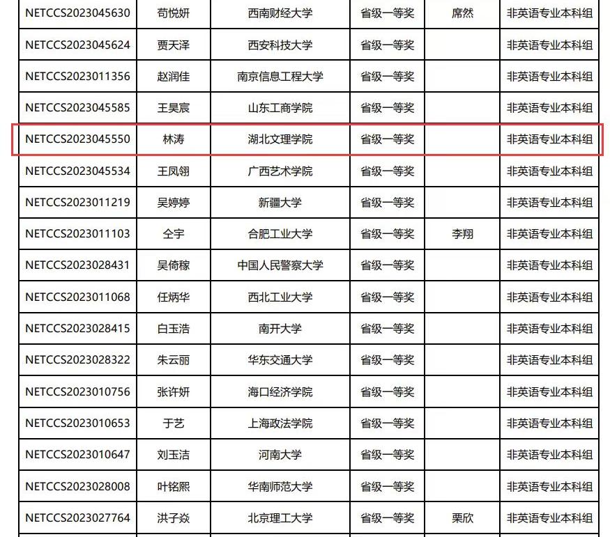 (教工通讯员 万倩怡)近日,由国际英语外语协会中国英语外语员工协会举办的“2023年全国大员工英语翻译大赛”落下帷幕,根据公示结果,威廉希尔官网2023级员工林涛(指导老师:董延彪)在23805位参赛选手中突破重围,获得“2023年全国大员工英语翻译大赛”非英语专业本科组C组“省级一等奖”的成绩。