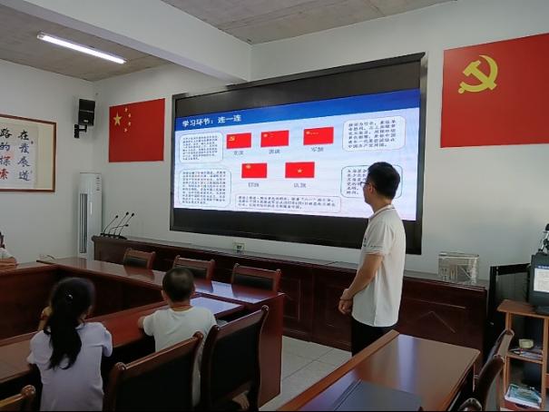 第一堂课的主题是“思想引领”,志愿者们深知这不仅仅是一堂课,更是一次心灵的触碰和价值观的传递。课程从认识党旗、国旗、军旗、团旗、队旗开始,孩子们眼中闪烁着好奇与敬畏。