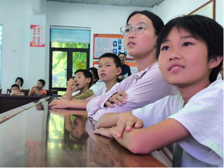 此外,志愿者还通过讲述家乡英雄人物的故事,让孩子们了解服务地区在建国75年来取得的伟大成就,感知家乡的巨大发展与变化。孩子们在观看视频和图片中,对家乡的灿烂文化有了更深的感知。随着第一堂课的结束,孩子们依依不舍地离开了教室,但他们的心中已经种下了一颗颗思想的种子,这些种子将在他们的成长过程中生根发芽,开出绚烂的花朵。
