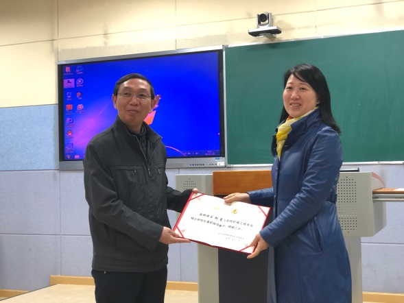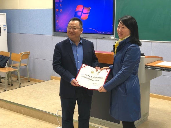 汪云副校长向受聘的企业导师代表颁发证书并致辞:感谢合作企业及受聘的企业导师对我校研究生培养工作的大力支持,并希望企业导师认真履行研究生导师的职责和义务,在企业、学校、员工间起到纽带作用,积极探索校企合作人才培养的有效模式。
