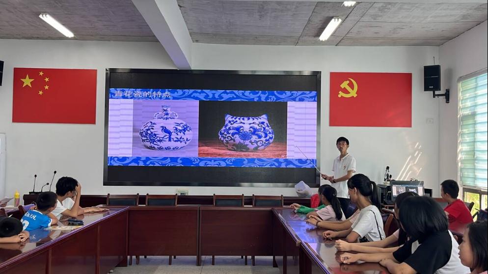 课程的开始,志愿者们通过趣味问答的方式引导出小朋友们对于青花瓷的兴趣,随后借助课件和视频资料介绍青花瓷的历史和工艺,并通过展示不同青花瓷独特的花纹使小朋友们对于青花瓷有了更加具体的认识,为后续的手工实践环节打好了基础。青花瓷,以其典雅高贵之美,不仅承载着中华民族深厚的文化底蕴,更是中国瓷器艺术中的珍品。这一段历史的回溯,不仅让参与者们感受到了青花瓷的艺术价值,更激发了他们对传统文化的热爱和探索欲望。