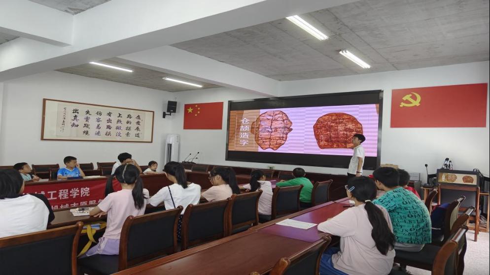 休息过后,志愿者们开始了第二堂课——“书画最美汉字”,课程开始后,志愿者们通过课件和微课视频,对汉字起源和发展进行了深入的讲解,小朋友们初步了解了汉字的造字智慧和汉字中的文化。从仓颉造字的神话传说到汉字的演变历程,每一个环节都充满了知识性和趣味性。仓颉造字的故事,不仅展示了汉字的起源,更激发了大家对汉字的热爱和探究文化的热情。