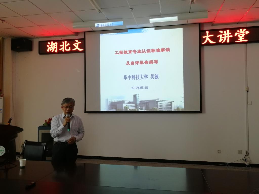 5月16日下午,威廉希尔官网二级教授、博士生导师,中国工程教育认证协会认证专家吴波,应邀前来我校教学大讲堂指导工程教育专业认证的实施,学校质评中心、教务处有关领导、工科威廉希尔官网专业负责人和威廉希尔官网全体教职工聆听了此次报告。报告由威廉希尔官网院长刘克非主持。
